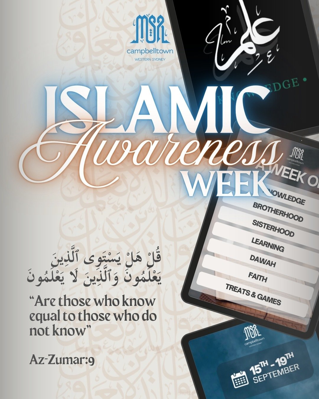 From Monday 15th to Friday 19th September, join us for a week of EXCITING BACK-TO-BACK EVENTS with the intention to increase in "علم" (knowledge), initiate reflection, and support awareness of…