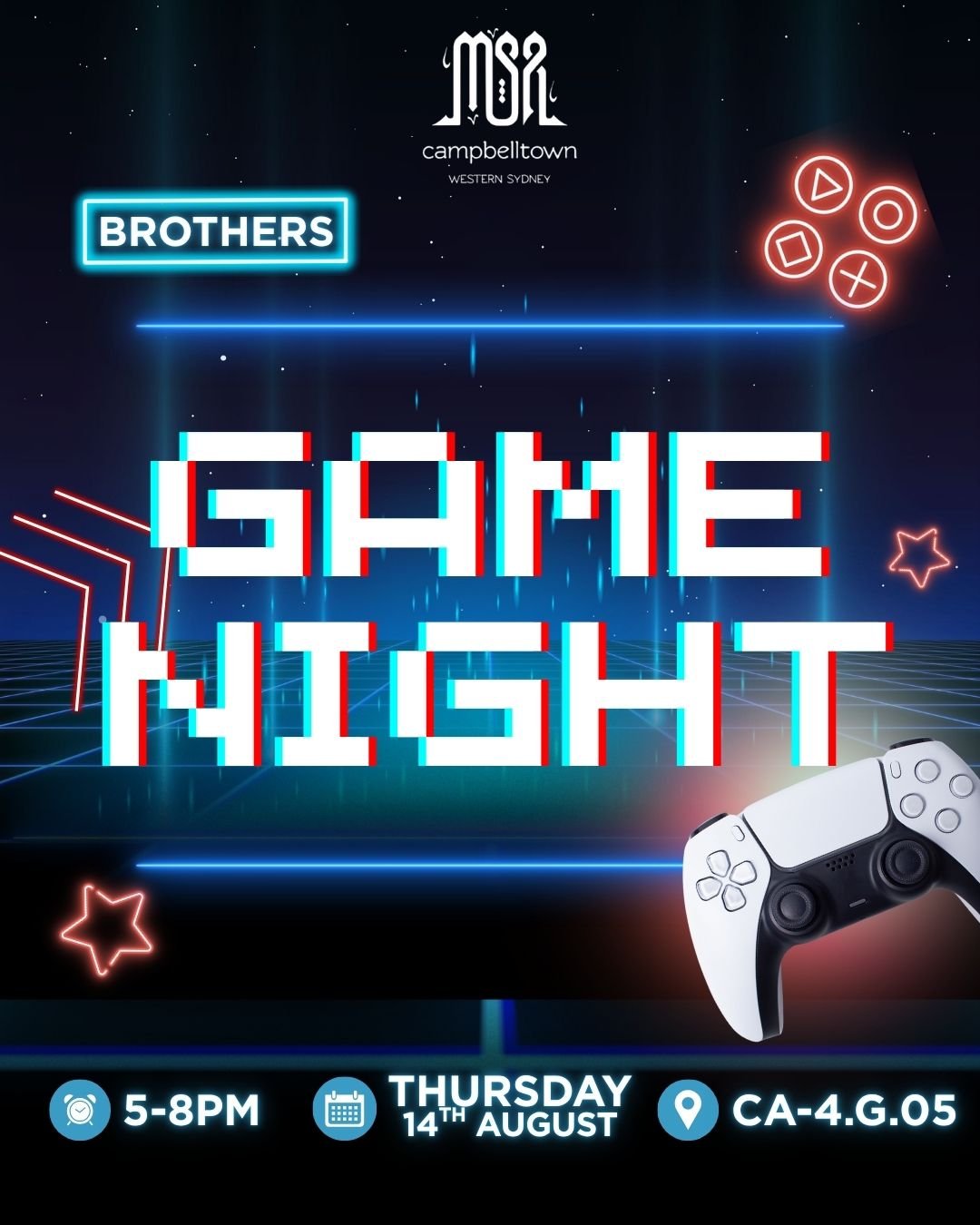 Ready, set, GAME ON! Calling all Brothers for a night of fun and friendly competition 💪 📍 CTOWN Campus Building 4.G.05 🗓 Thursday 14th August ⏰️ 5 - 8pm 🍕…